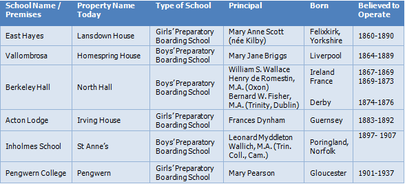 1) Preparatory Schools in Pittville Circus Road, 1860 - 1945